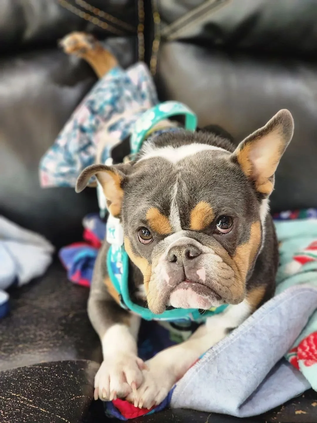 Jolene (originally named Darla), aka JoJo came to the pad on March 19, 2019. She is an English Bulldog and has Spina Bifida. My girl is still going strong. At 6 years old she's more chill and prefers to roll up in her favorite dinosaur blankie that she found at a yard sale for a buck! She still comforts me and pauses everything for a dance pawrty!