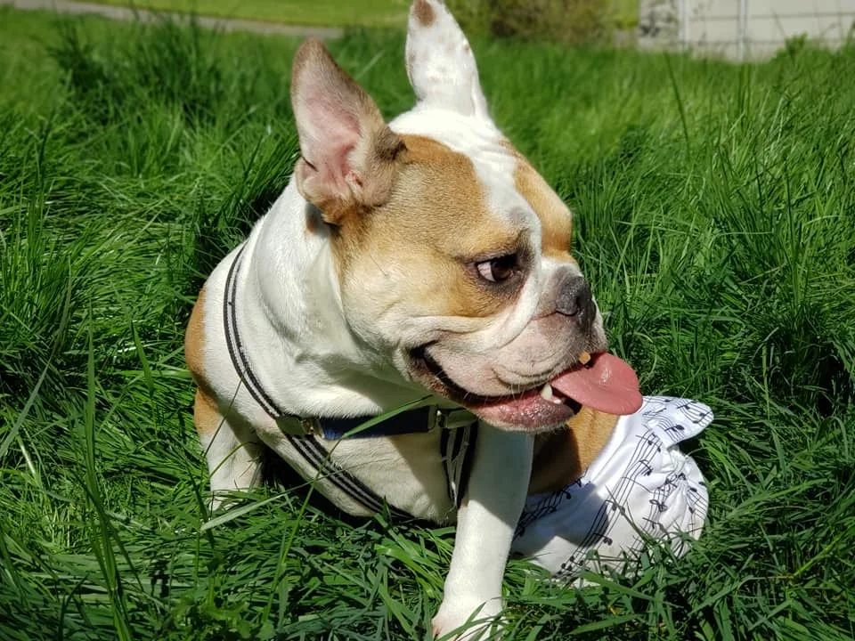 Dookie Bowser F.B.: This ding dong is just...well he's a Frenchie . He manages his cleft palate well and the hydrocephalus is stable. No issues. He narks at everything and currently has an obsession with our life sized Leatherface in the yard. The best thing about Dookie...his million dollar smile!